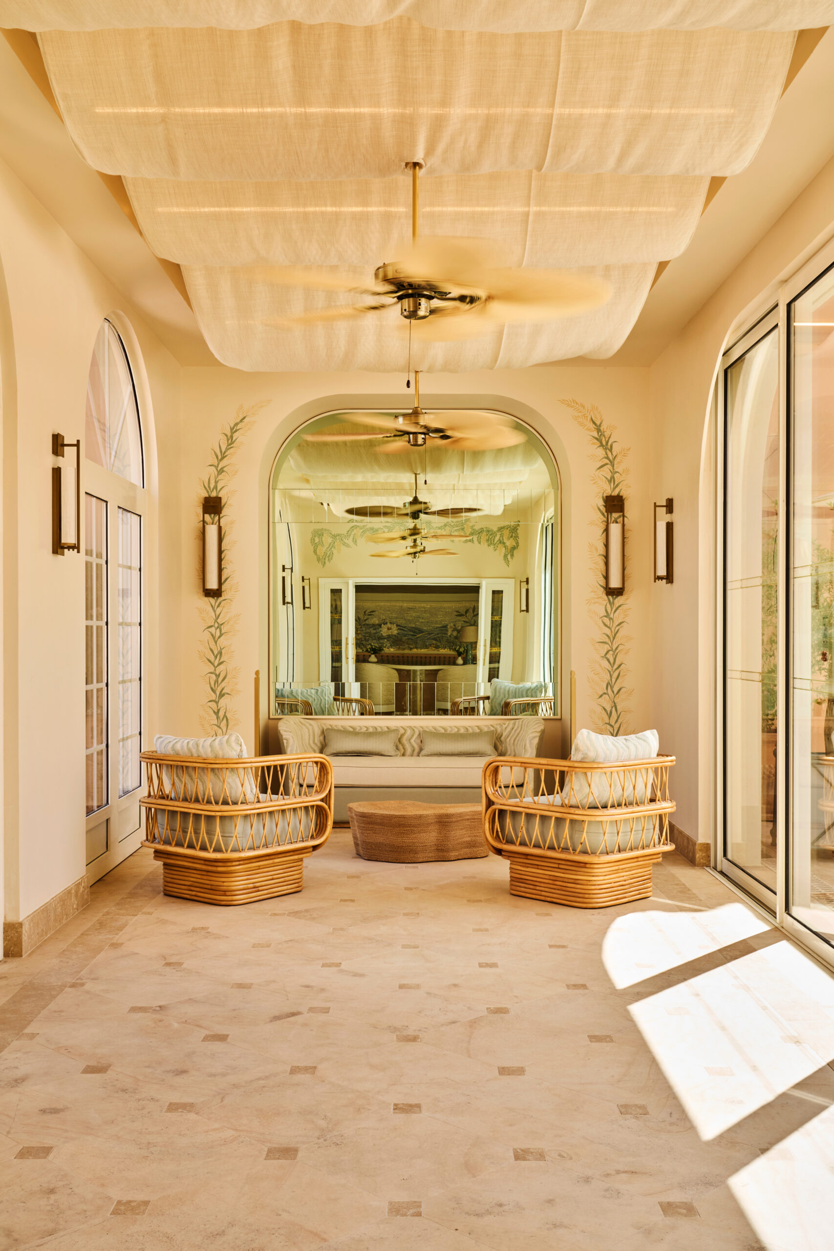 Oscar Lucien Ono s’est librement inspiré de la Villa Santo Sospir, à Saint-Jean-Cap-Ferrat, aux murs « tatoués » par Jean-Cocteau. Pour les fresques de la Villa Miraé, il a fait appel au peintre décorateur Antonin Lamotte. Les meubles et tapis sont rehaussés de touches provençales, appliques et lampes de chevet en céramique, créations en terre cuite émaillée de la maison Paradis. Voisine du patio, la salle du petit-déjeuner a été pensée autour du thème des herbes sauvages, dans une atmosphère botanique. Tandis que le restaurant offre un décor marin, une œuvre murale représentant une vague et un mobilier en corde tressée, faisant référence à l’univers nautique.