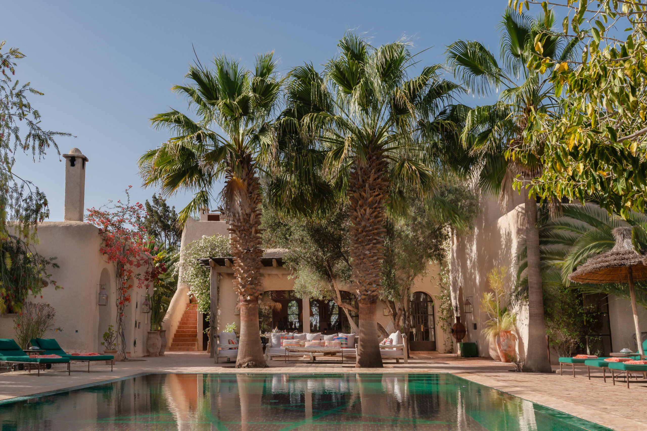 Offering the ideal setting to relax in the sun by a heated sumptuous infinity pool covered with green mosaics from Fez, it feels like the magical oasis of our dreams, an invitation to step into a world where time stands still.