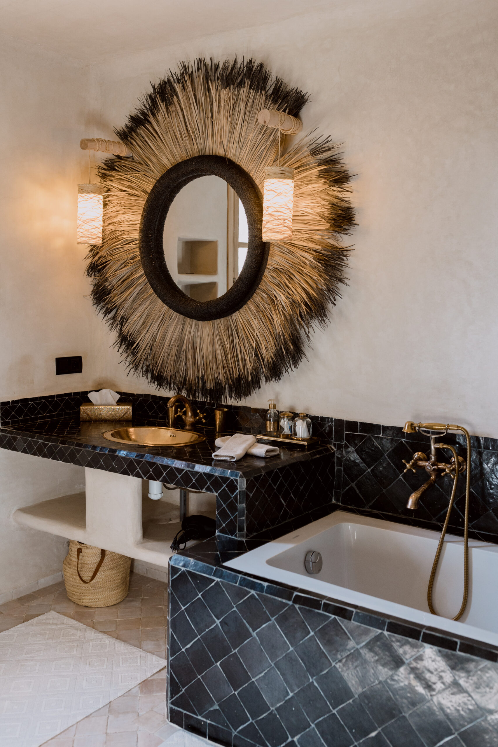 Offering the ideal setting to relax in the sun by a heated sumptuous infinity pool covered with green mosaics from Fez, it feels like the magical oasis of our dreams, an invitation to step into a world where time stands still.